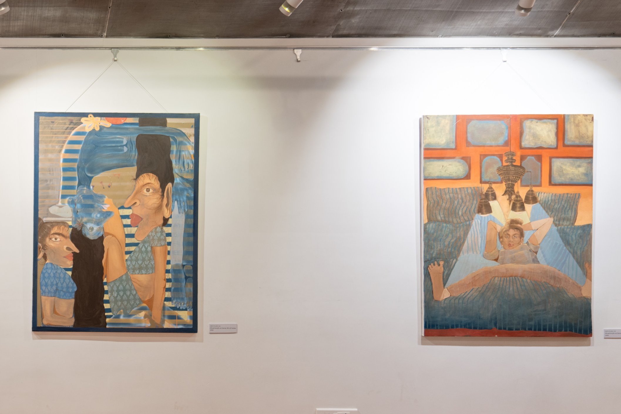 “The Frame Game" embodies the interplay between windows and paintings, tempting you to pull back the curtains. Exploring a framed view, whether through a square window or a painting, bears an uncanny resemblance: the viewers inadvertently become voyeurs. We find ourselves peering into private lives through these square frames, moving from one window to the next, seeking visual gratification. For me, a compelling painting mirrors this experience. My fascination lies in the art of square framing that offers a pathway for the eye to be able to comfortably unravel the intricate layers within. Through my artworks, integrating frames, borders, and windows, I hope to satiate your nosy allure with the magnetic intimacy of imagined narratives within enclosed spaces.